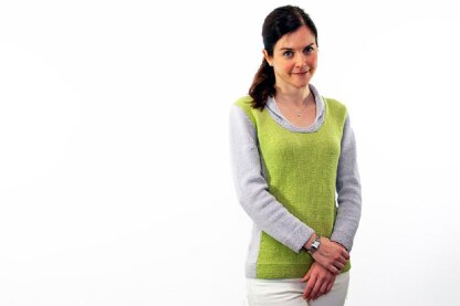 Lillian, harbinger of spring! This garter-trimmed, color-block pullover is a delightful transition piece for welcoming warmer weather. Subtle shaping at center front and back panels creates a slimming visual, enhanced by the garter waistbands at its sides. The nubbly garter stitches of its rounded shawl collar are picked up from its neckline, with short rows that disappear into its shaping. This design is worked bottom-up with easy seaming at its side panels. Sleeves and collar are worked in the round. It's a fun project. Enjoy!