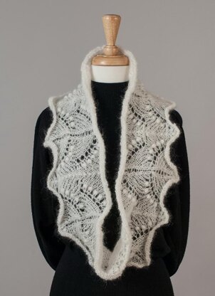 The Lily of the Valley Cowl is worked in-the-round using a bulky weight mohair, wool and nylon blend yarn - two skeins of Berroco's Cirrus.