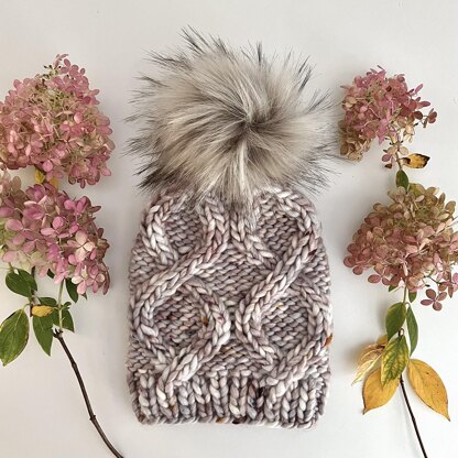 The ‘Limitless Beanie’ has a bold cable texture and a cozy fit. The super bulky weight yarn makes for a warm winter accessory and the big stitches work up very quickly. This is a super satisfying knit that you can complete in a day. Included with this pattern are instructions in both written and chart form, depending on your preference.