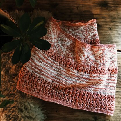Named for the romantic hero of my favorite opera, The Barber of Seville, this 2 color fingering weight cowl alternates between easy lace, relaxing stripes and engaging colorwork. Long enough to loop around the neck, this is the perfect lightweight layer for cool spring and summer evenings.