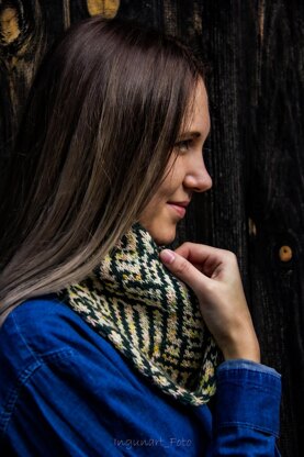 This loop cowl is knit in the round in a tube. This cowl begins with a provisional cast on and uses Kitchener Stitch to join for a smooth, invisible finish. The floats are hidden inside so no need to catch them. The line art cowl was inspired by my “Line art socks” design. Both of these designs futures simple and graphic lines that give you the freedom to play with colors and at the same time keep the structural look. Line art cowl is the perfect way to use up your leftover yarn and showcase it. You can knit your cowl as long as you like, and use up a lot of scrap yarn.