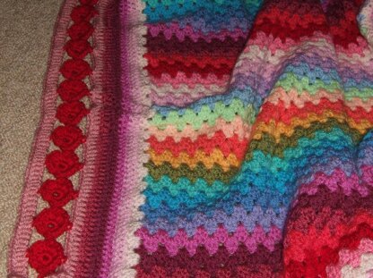 Alongside the written instructions I've provided a detailed photo tutorial. Over 6 pages, I show you how to work a single poppy, or do a line of poppies as a crocheted no-sew edging to a blanket or other straight edge.