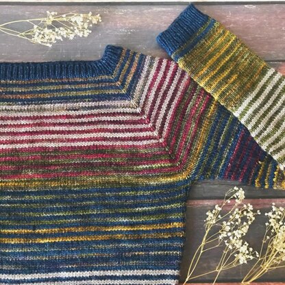 Lineage Sweater is the descendant of all your previous projects. It’s a raglan sweater worked in the round, seamlessly, from the top down. It can be made using only leftover yarns, or with mini skeins, or even with full skeins. It’s a fun sweater to knit and the result can be as colorful as you desire, as you can use any number of colors, from 2 to 1000!