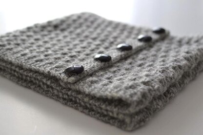 This scarf benefits from the choice of soft, lofty yarns and lightweight buttons, and is a slightly heavier weight and narrower width than it's 'sister' pattern, the Lesia Loop.