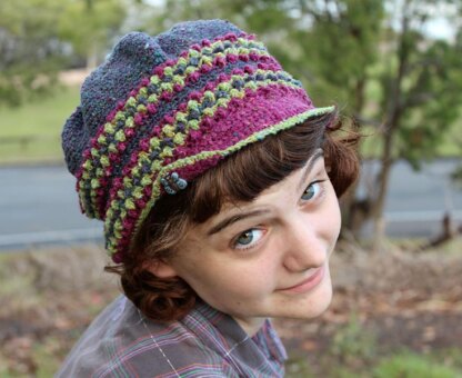 This uniquely shaped tam with its berry like pattern on the band is fun to wear and just as much fun to make. It can be made with or without the small visor and buttons for two completely different looks.Lingonberry Tam also looks wonderful when using a variegated yarn for the berry section or when making the entire hat using a skein of self striping yarn. Lingonberry Tam is available to fit head size: Small (S): 20" 50cm Medium (M): 22" 55cm Large (L): 24" 60cm