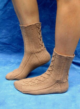 This sock reminds me of amber scotch, single malt with a hint of smokiness. The Linsmore cable is much easier than it looks. After a repeat or two, you will have it memorized. I placed the cable on the front and the back of the sock so the sock looks good both coming and going. The sock's construction is traditional, knitted from the top down with a slip stitch heel flap and gusset for comfort and durablility. Even with two cables, the sock is thin enough that I can still wear it with my favorite loafers while I traipse through the heather. Well, I’m really traipsing through plain old mud, but a girl can dream, can’t she?