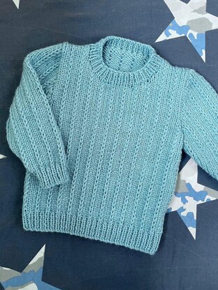 This cosy Aran weight sweater for kids is worked flat from the bottom up, with a generous fit and a striped effect made by slipping stitches at regular intervals.