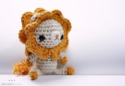 This lion is about 5.5" (14cm) tall. Results will vary depending on your tension and your yarn & hook choice.