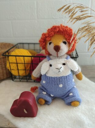 Knitting pattern in PDF format 26 pages of detailed description 63 step by step photos the description includes lion, cardigan, trousers,Sheep’s muzzle for the trousers the height of the finished toy is 25cm