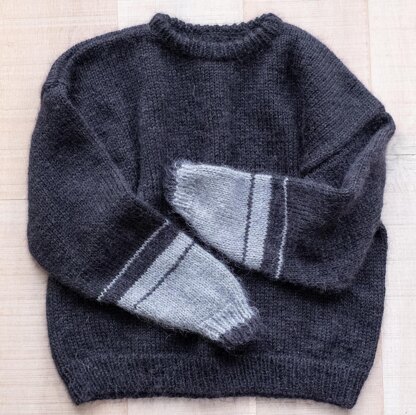 Sweater is knitted bottom up on straight & circular needles.