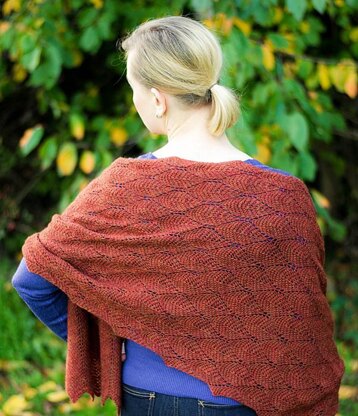 Listopad is a lacy stole worked in a Tunisian crochet version of a well-known knit stitch pattern. The leaf stitch forms the main body of the stole and sections of the plain lacy chevron stitch edge it on both sides.