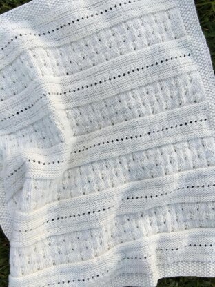 The stitch patterns in this design, combine to produce a blanket of heirloom status, especially when worked in a yarn with good stitch definition. You need to be able to knit & purl, work basic eyelets, as well as understand the nature of temporary stitch increases in a row, which are later decreased in another row.