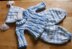 THIS PATTERN HAS INSTRUCTIONS TO MAKE A JUMPER, TROUSERS BOOTEES + HAT