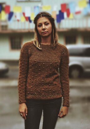 Little Cabin is a round-yoked pullover, worked seamlessly from the bottom up.