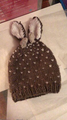 This cute little deer hat knitting pattern is perfect for your little dear! This deer hat is knit in the round and with two colors of yarn at once (fair isle knitting) to make the cute tiny polka dot pattern. It includes instructions for all four sizes and optional antlers and/or bow in case you want a baby girl deer hat or a baby buck deer hat!