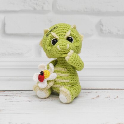 I used «Slonim» yarn (wool/acrylic, 50g ~ 200m, Belarus, 38sс = 4 inches). Colors – green, light yellow and white. For the flower, it is advisable to use a slightly thinner yarn (Slonim yarn can be divided into separate threads, so I used the same Slonim yarn, but instead of 4 threads I left only 3), colors - dark yellow, white.