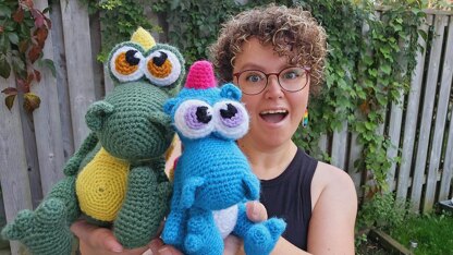 Probably you didn’t know that, but there is a magic country far away where DRAGONS live! Oh, how good and beautiful, and friendly they are! The dragons of that country can be of different colors – blue, and orange, and raspberry, and even purple; and they all have a rainbow crest, that’s because they are Rainbow Dragons that bring luck, happiness, joy, and love.Materials: Acrylic yarn, worsted weight (240 m/100g) Colors: green (tone – Asparagus), yellow, white. A bit of : lettuce-green, mustard-brown, black. A piece of white felt for the wings (optional). Size E (3 mm) crochet hook long big-eye needle. Styrofoam ball (5 cm in diameter). polyester, needles, scissors.
