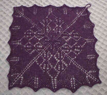 This pattern contains directions for three projects. Each project uses about 50 grams of either the hemp yarn (165 meters per 55 grams used for the Green Spiral and the Purple Square) or linen yarn (125 meters per 50 grams used for the Bronze Square.) The pattern is charted and well illustrated. Each of the three projects contain techniques that build the lace knitter's skill set, including picking up and knitting a border, adding a knit edging and starting a piece from the center. Each project can be used either as a face cloth or as a table center piece.