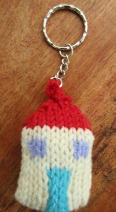 This is a pattern for a Little House Keyring. It is a quick project to make and a good way to use up left over yarn.