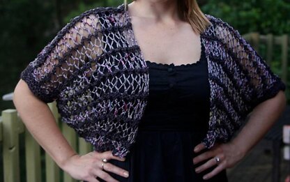 Pattern is given in 3 sizes up to 16 -18, but looks best on smaller sized people. For a similar shrug to fit larger women see "The 4 L Shrug".
