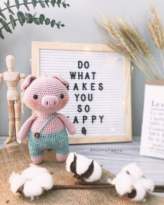 Title: Little Pig Lizi PATTERN Description: This is a PDF crochet pattern, not a finished doll. Little Pig Lizi pattern is written in ENGLISH - Size approx: 16cm - 17cm - Yarn: Yarnart Jeans, Gazzal baby cotton - Hook: 2,5mm and 3mm