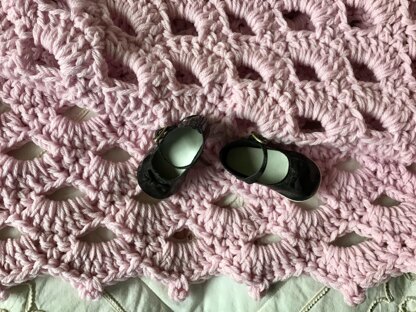 Textured lattice look in The Little Maryjane Blanket. Heirloom quality. Completely reversible and so chic! Fits any decor in any room. Simple crochet stitches used. CARON BRAND ONE POUND YARN USED IN THIS PATTERN.