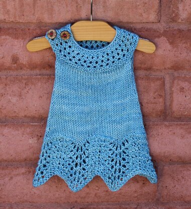 Little Miss Amy is a classic button shoulder, A-line tunic top. This is great over long sleeves for winter and alone for summer. Top down design, knit mostly in the round. Suitable for DK or Worsted yarn. The adorable handmade buttons can be found in the Etsy shop: Katrinkles