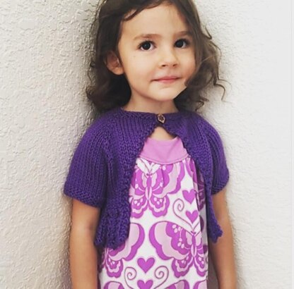 Little Miss Royal has a sweet lace hem, a cutaway front and is a classic cropped cardigan/shrug. Little Miss Royal is knit top down, with the sleeves knit in the round, and you have 2 sleeve lengths to choose from. The handmade buttons can be found in the Etsy shop: Katrinkles