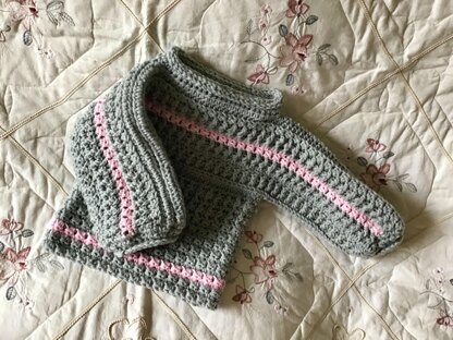 Little Nicole is ready for the ski lodge! Snuggly, warm and stylish. Textured with raised stitches throughout. Simple crochet stitches used. CARON BRAND ONE POUND YARN USED.
