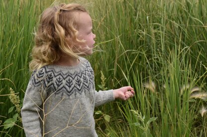 Inspired by the frost-covered grasses of November, Little November features a stranded colorwork motif designed to evoke the feeling of that quiet month. Two contrast colors are used in the sample, which requires some rounds of knitting with three colors. The design would also be wonderfully striking worked in only one contrast color, which would only require working with two colors. Little November is worked seamlessly from the top-down with a circular yoke. The yoke is entirely charted with written instructions for the body and sleeves.