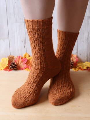 The socks are knitted from the toe up, and instructions are included for a German Short Row Heel, or a Heel Flap and Gusset.