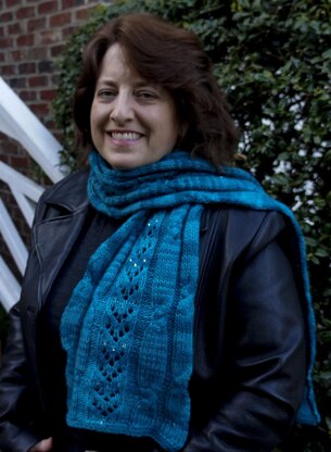 Easy lace, cables, and beads for sparkle flow in a current down the scarf reminding me of our local Little River. Beading is optional, but the pattern is a good beginner beading project.