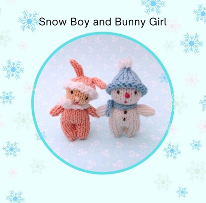 This is a knitting pattern to make little snow boy and bunny girl. They are about 8cm tall. The basic figure is the same pattern.