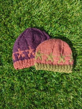 This hat is knitted from the bottom up on straight 4mm needles (although you can also use circular!) before being seamed together at the back. It starts off with a few rows of ribbing before starting the intarsia stars. We then make decreases to form the curve of the hat and bring it all together!