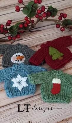 I love "sweater weather" and had so much fun knitting these! So many fun ideas to personalize! Add ribbon, buttons, felt appliques or even add embroidery or duplicate stitch designs! Designed using DK yarn but you could use any weight yarn - just need to use different knitting needle size and of course your finished sweater will be different sizes.