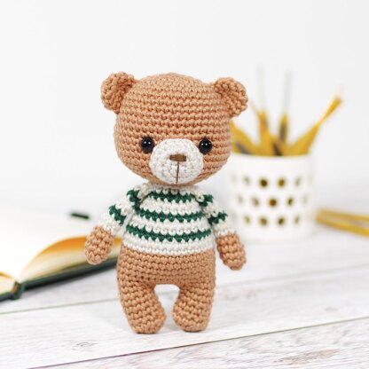 With this crochet pattern, you can make your own cute little amigurumi teddy bear in a stripy sweater. The pattern covers the whole process from start to finish, illustrated with many step-by-step photos, which makes it easy to follow even for beginner toy makers. All you need to know are basic crochet stitches, all amigurumi-specific techniques are explained in the pattern.
