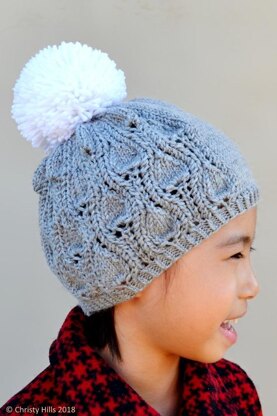 LITTLE VINE HAT This pattern is a combination of pretty little vine lace and simple stocking stitches. It has 4 sizes from 6 months to adult. It is knitted with DK weight yarns and a stylish hat perfect for a windy Fall.