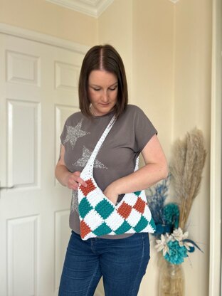 Beautiful origami style crochet bag that will be a superb accessory to any outfit! It uses Tunisian crochet entrelac technique to create unique look!