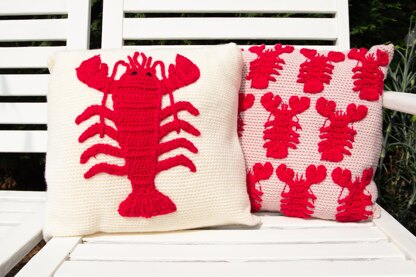 Get your hands on both lobster cushions for maximum crustacean decoration! The romantic lobster mates for life so spread a little love with this fabulous home decor. The cushion bases are made in simple double crochet, with lobster appliques.