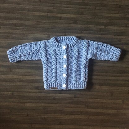 LOLA CROCHET BABY CARDIGAN PATTERN PDF - A fancy cabled baby cardigan in 4 sizes from 0-3m to 2 years. Made seamless bottom up so no sewing of side seams. Unisex | Gender neutral - Baby Boy or Baby Girl.