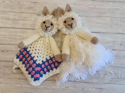 This pattern contains 2 designs: 1. easy version for beginners with a granny stitch blanket 2. intermediate version for more seasoned crocheters with a fluffy star-shaped blanket They are the matching loveys to my 3in1 Llama Baby Blanket which you can buy separately in my shop. FORMAT: PDF file, pattern written row by row in US terms with side notes and photo tutorial and link to videos where needed. LANGUAGE: English SIZES: blanket - 53cm in diameter. Your finish size may vary depending on your tension, hook and material used. MATERIAL NEEDED: DK yarn (light worsted, #3): - 3 x 100g skeins of white (for intermediate version), 2 x 100g skeins of white (for beginner version) - 0.5 x 100g skeins of brown (for each version) - 1 x 100g skeins of pink and blue each (for the beginner version) - small quantities of black for the muzzle - 12mm safety doll eyes - toy stuffing HOOK NEEDED: 4mm
