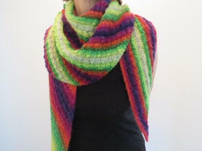 Knitted from tip to tip, this design uses a variable stitch count pattern. Starting with 4 sts it increases in size as you knit so if you choose to use this design for a scrappy shawl or wish to substitute for a stashed yarn you have plenty of, you can just keep increasing until you are ready to bind/cast off. It features a simple icord bind off.