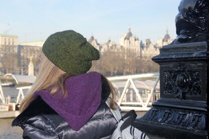This hat was inspired by the London Eye, one of the more recent additions to the London skyline, and one that can be seen for miles. With just enough slouchiness for style and a striking reverse stockinette background, twisted knit stitch columns run up the body of the hat, getting closer and closer to each other as you reach the crown, just like the spokes on the Eye. Pattern includes charted stitch pattern only. Sample shown was knit in The Uncommon Thread BFL Light DK.