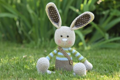Long-ear Rabbit is a gleeful bunny – the best companion for little boys to travel through their childhood. He`s wearing a striped sweater and non-removable trousers with suspenders. Ears covered with fabric make him really special.