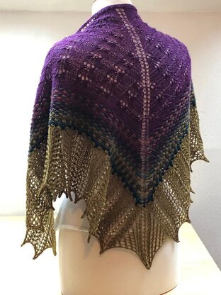 Long Time Sun is a triangle shawl that contains a delightful combination of textures, colorwork, and lace, providing lots of opportunities for play. The slipped stitch colorwork section can be worked with any improvised color scheme you like!