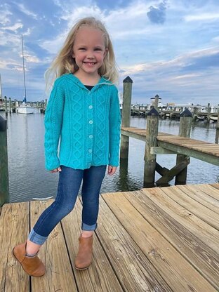 This seamless cardigan is a classic child’s sweater, with a gender-neutral design paired with timeless cables. For minimal finishing, the cabled button and buttonhole bands are worked at the same time as the rest of the garment. The body is worked flat, in one piece from the bottom up to the armholes. Sleeves are worked in the round from the cuff up and joined with the body for raglan shaping to the neckband. The open, generous hood is worked seamlessly as an extension of the body from the neck up, using short rows to shape the top.