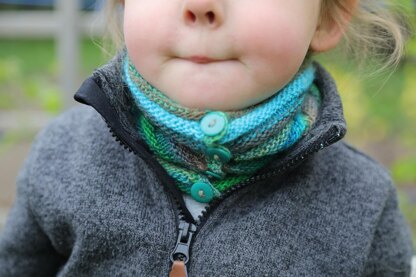 This is made for a 3 years old child. It is easier to keep warm than with a normal scarf. You could make this in any size you like, also without buttons or as a loop that has to go round the neck twice. For this case you only have to add stiches.