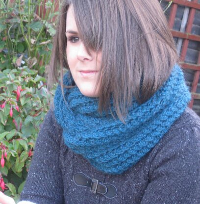 A snuggly, quick knit, circular scarf consisting of a simple 2 row pattern on large needles. Yarn-overs are paired with decreases to give a beautiful lofty fabric which is oh, so cozy.