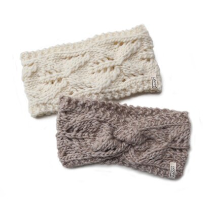 The Loopy Leaf Headband has a leaf lace texture throughout and a small garter stitch edge.
