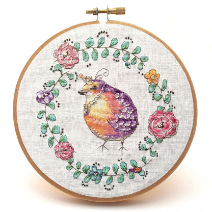Feeling a little down because you've put on a bit of weight while stuck in your house? Don't even worry about that, Lord Fatbottom is here to show you that you can embrace your curves and looks absolutely spectacular at the same time. This cross stitch pattern features this princely looking chubby robin with his adorable little crown and necklace. Based on an original watercolour and ink pen illustration, delicate backstitch and French knots add texture and fun to this pattern. This pattern also comes with optional printable speech bubbles (some sassy, some sweet, and some blank for your own phrases) so you can make Lord Fatbottom express your current mood as you wish. The pattern comes with a full black and white pattern and a full colour pattern. Model stitched over two on Zweigart 28ct Cashel linen (Antique White).